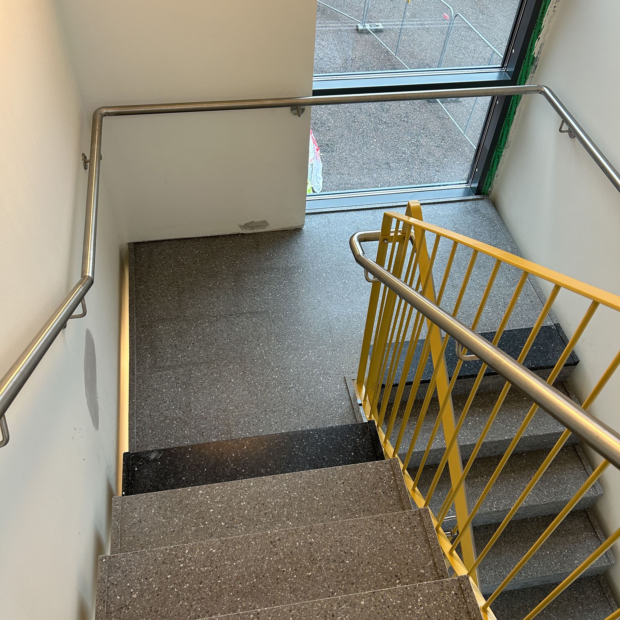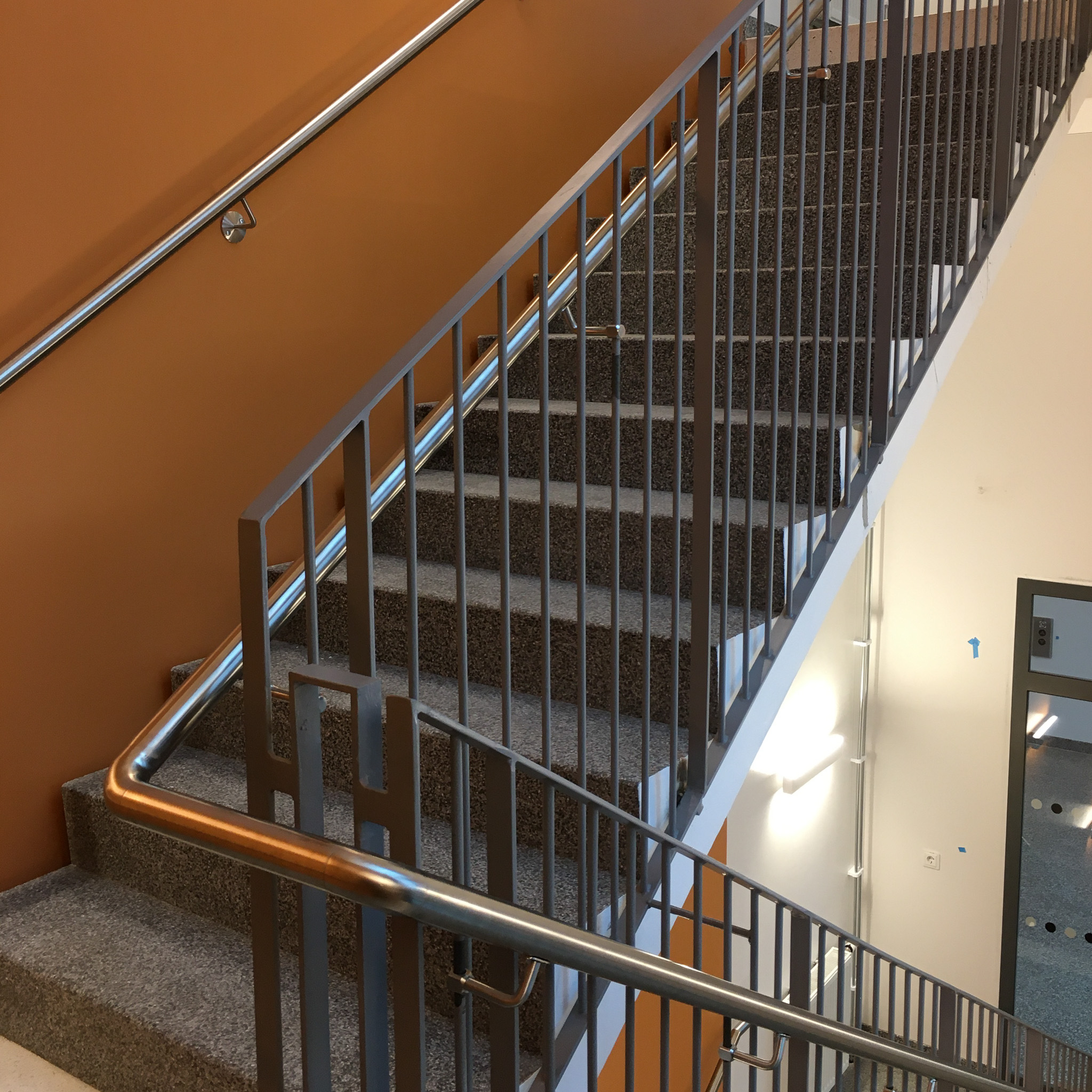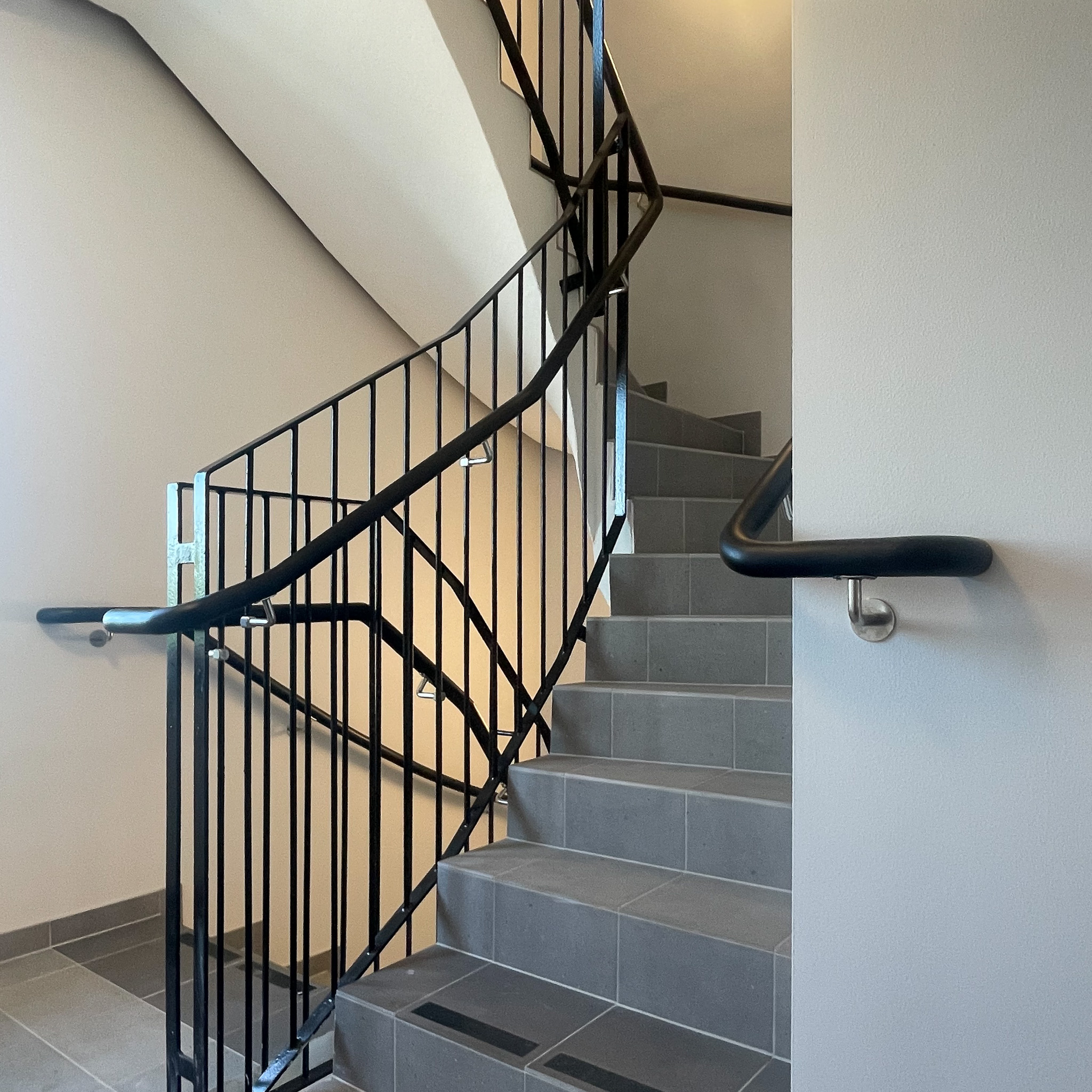 Stilfulla räcken i pulverlackerat plattstål och rostfri handledare för en modern och hållbar lösning.