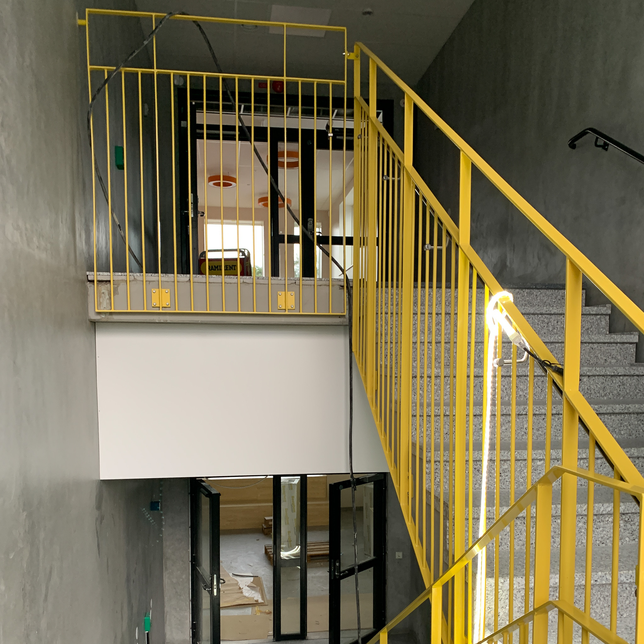 Innovativa räcken med belysning och robust stålram för en modern och funktionell lösning.
