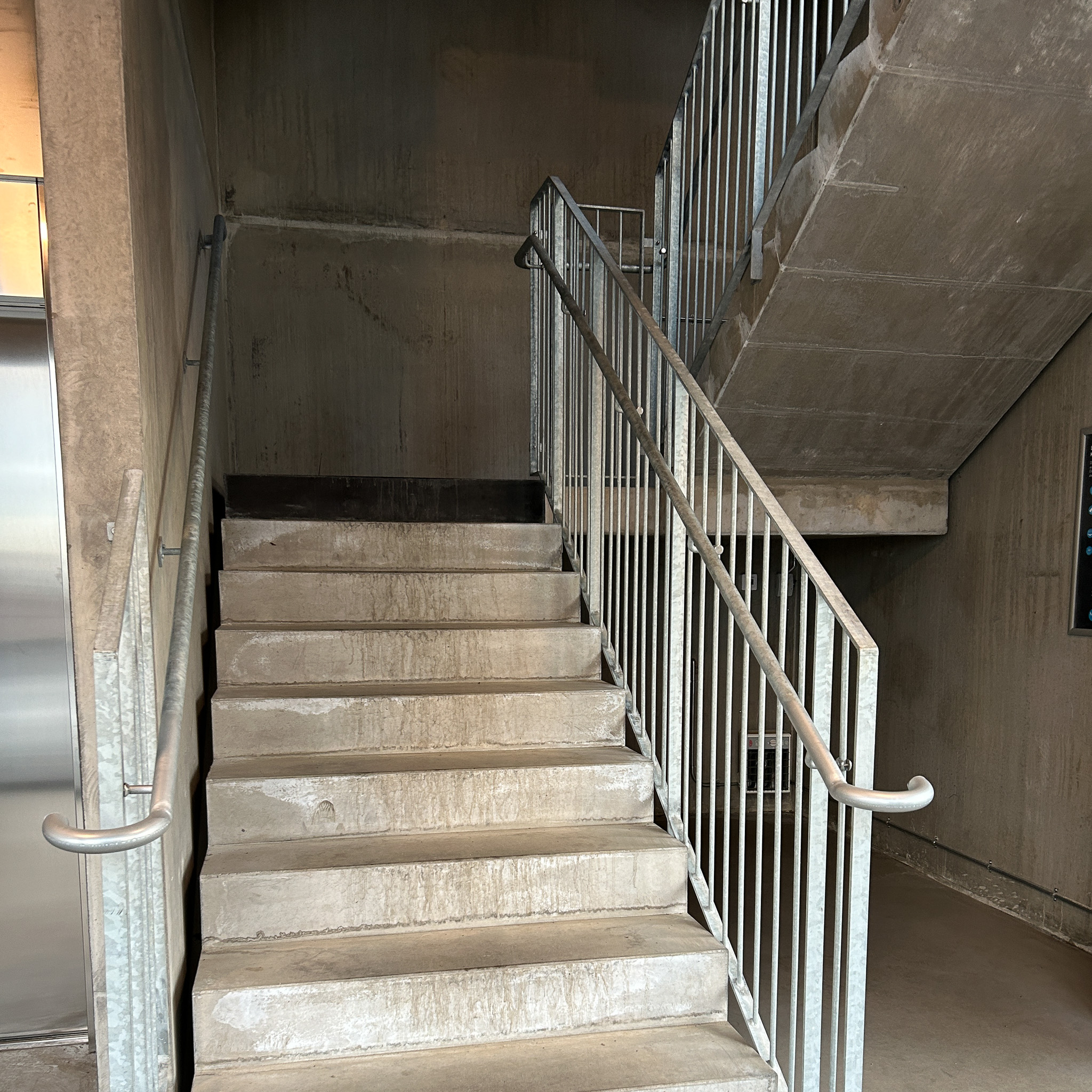 Stilrena och robusta stålräcken med vägghandledare för en trygg stadsdel.